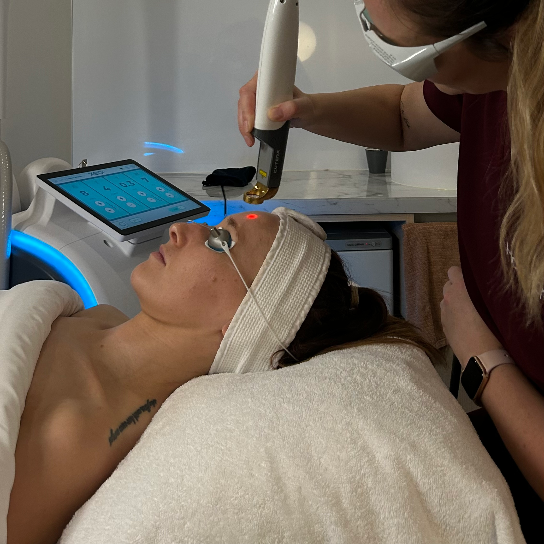 Skin treatments, including Laser Genesis, Dermapen4 Microneedling and advanced facials, focus on improving the skin’s surface. These treatments help refine texture, support collagen production and improve overall skin tone and clarity.